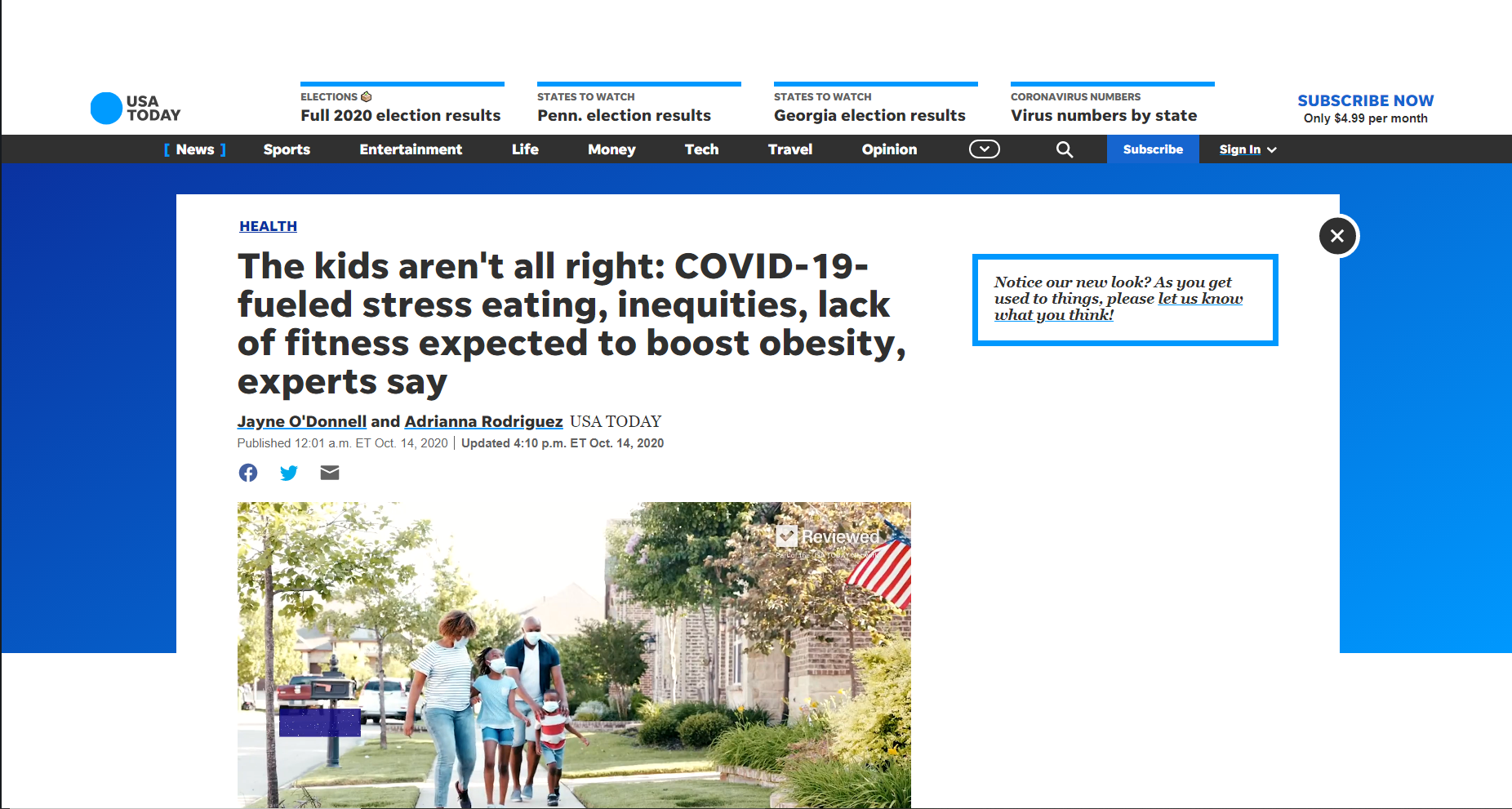 Social distance and virtual learning have taken a toll on children with many turning to stress eating for comfort. Additionally, children from lower-income households are at high risk for obesity due to usually having to rely on cheaper, lower quality food. These factors, coupled with lack of exercise, had led to a small uptick in childhood obesity cases, with more expected to come, during COVID-19.