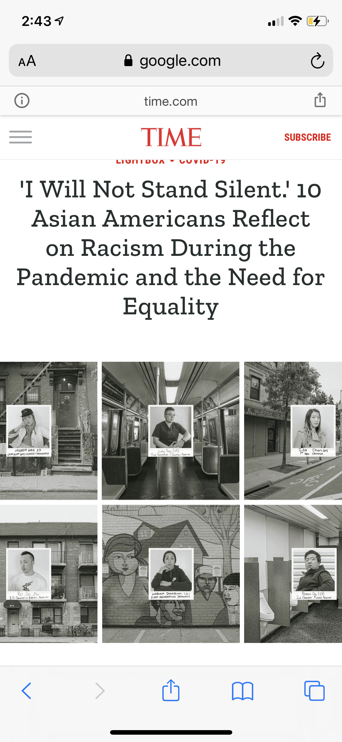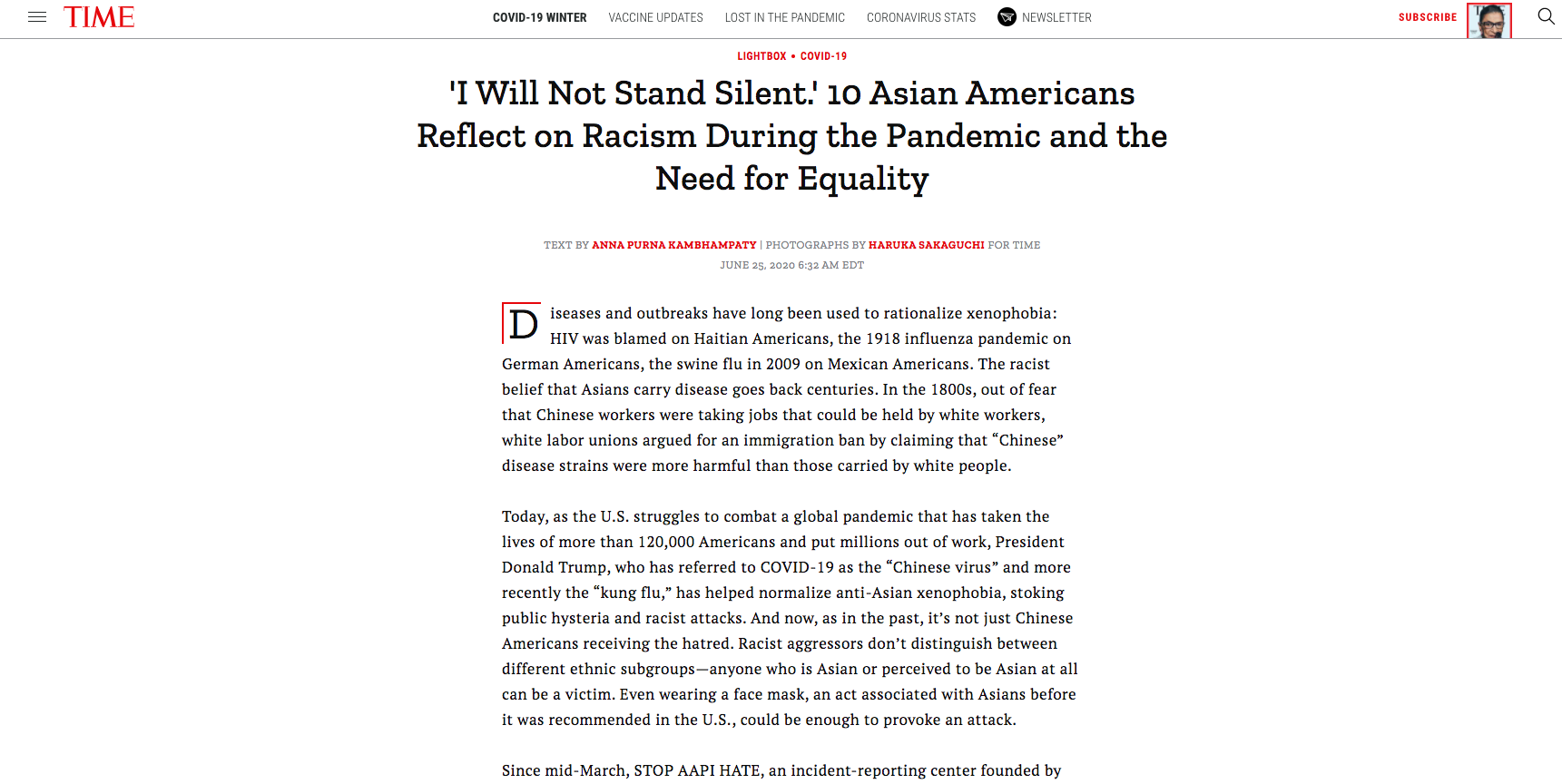 The Coronavirus has been referred to as the “Chinese Virus” and the “Kung Flu.” Xenophobia during a virus is not new. New York Times interviewed Asian Americans to share their experiences and to document the racial injustice occurring in the United States.