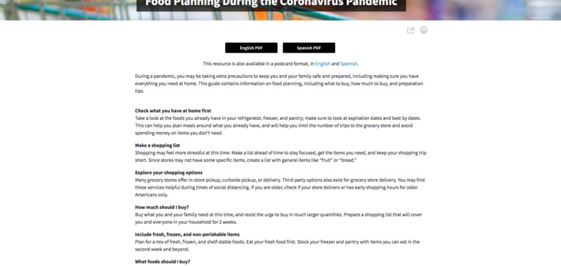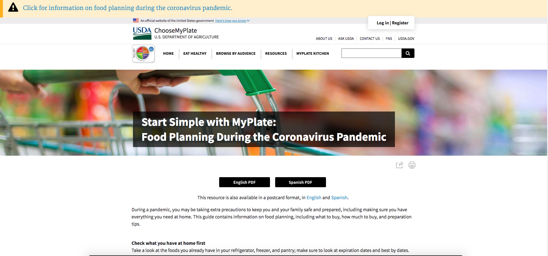 This is a link to choosemyplate.gov, where guidelines are provided on how to plan a food plan during the pandemic.