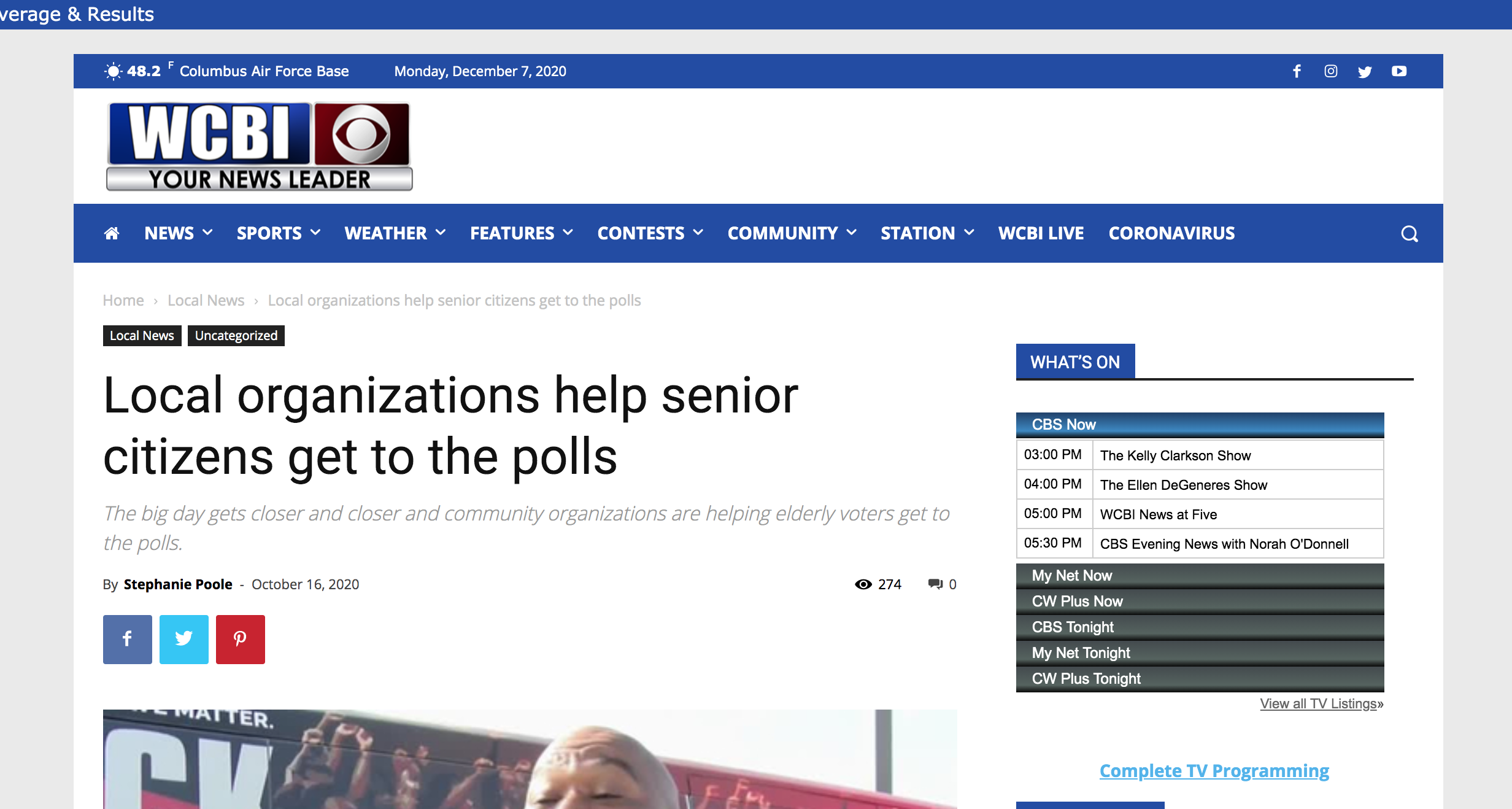 Story about local organizations helping senior citizens vote during a pandemic. It’s an interesting news story about the necessary steps needed and how precarious it is for seniors to vote during this difficult time.