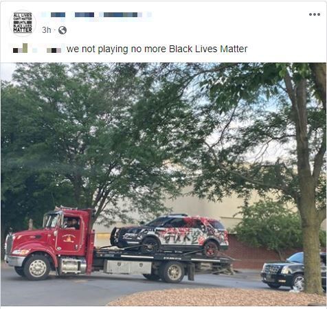 After the protests turned violent cooled down in Des Moines, Iowa, there was still a lot of anger. One group decided to vandalize this cop car to send a message to the public/media. This is a picture from a social media post of the cop car.