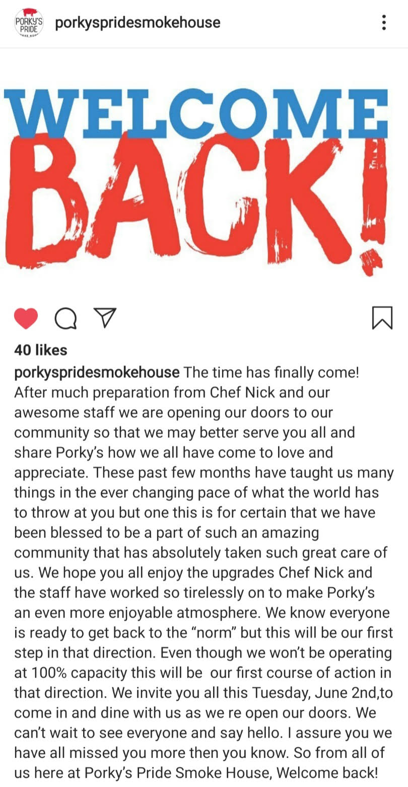 Restaurants were closed for dine-in service for several weeks due to the coronavirus, with some of those doors remaining closed permanently. Restaurant staff all over the world worked tirelessly to clean, sanitize, and prepare for a new "normal" as far as dining out goes. Seeing posts like this for your favorite restaurants opening back up was a small glimpse of normalcy the world had missed for months.