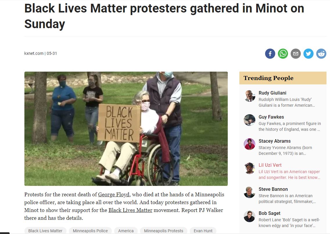 After the George Floyd murder, citizens in Minot, ND put together a protest and vigil for Mr. Floyd at Oak Park in Minot, ND. Minneapolis is a mere eight hours from Minot and there were many people affected by Floyds murder in North Dakota.