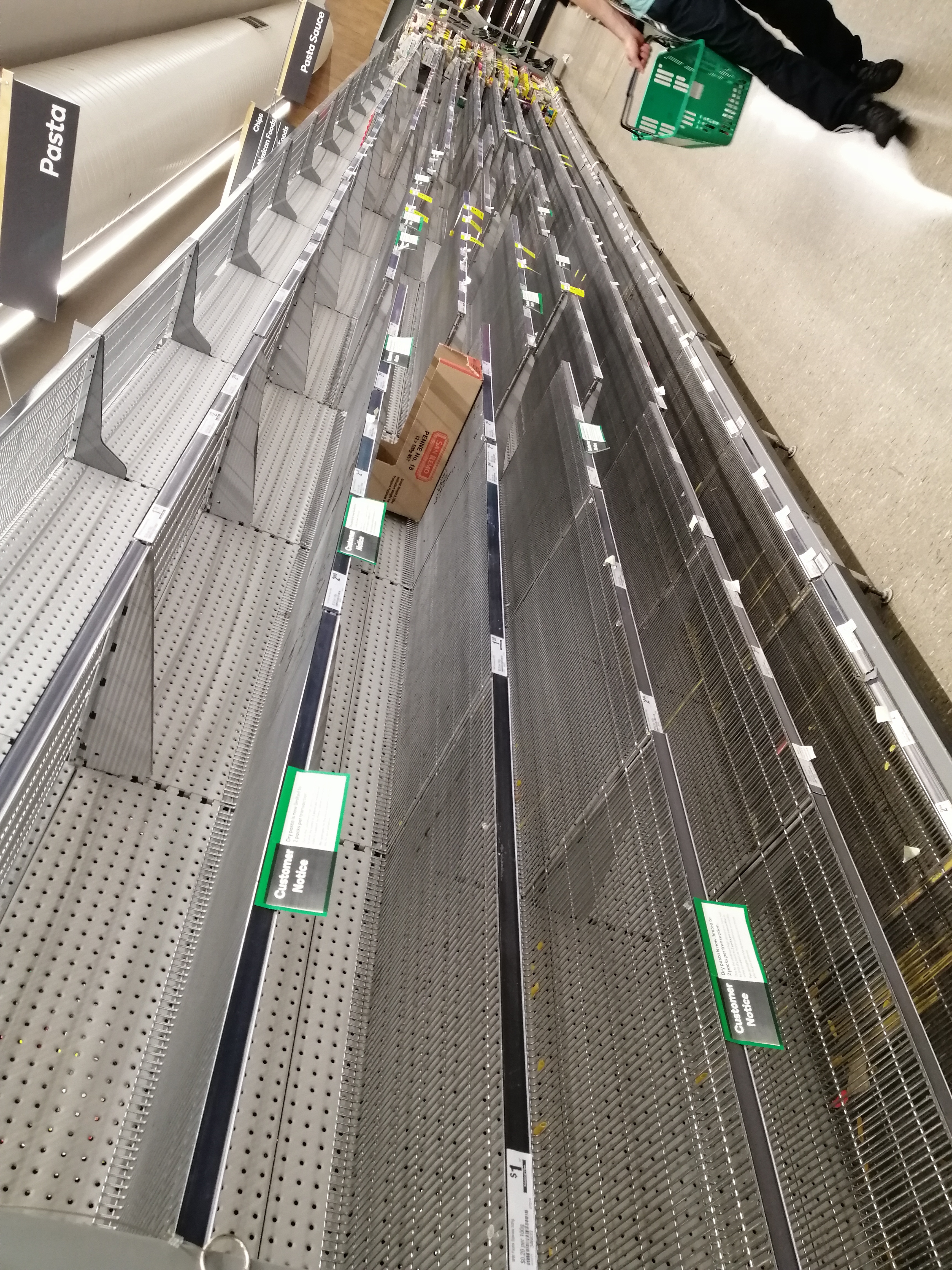 When Australia first got hit with news of how devastating Covid-19, many people went onto a panic-buying frenzy, stockpiling non-perishable essential items. This is a photo taken at my local Woolworths with the pasta shelves completely gutted. Toilet paper, rice, hand sanitizer, yeast and hand soap were equally cleared out. Some stores went as far as to post signs out the front of their stores stating "NO TOILET PAPER AVAILABLE". As a young person who lives away from home, my regular diet consists of a lot of pasta (also because pasta is delicious). During this time I ended up eating a lot more vegetable soups, because ironically fresh fruit and vegetables supplies weren't particularly affected by the virus or panic buying as they wouldn't last in an impending apocalypse. It took about a month for grocery stores to re-configure their supplies, and the for the panic to die down slightly. When this first happened, the essential items were piled high front and centre at the entrance of the store: I walked in to this same Woolworths one day with a tower of 24-pack toilet pack stacked as tall as I was. This object shows how crowds can react in unexpected and instinctually self-defensive ways when threatened with a large and sweeping danger. HIST30060.