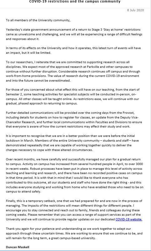 These are all demonstrations of how I have been impacted by the pandemic, by having to leave my exchange, and by my university having been moved entirely online.