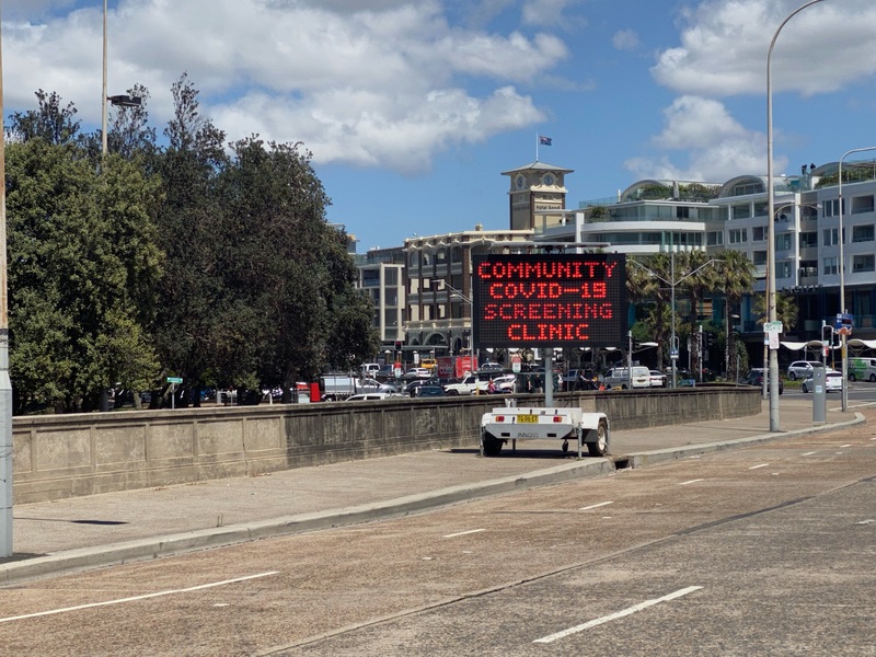 To accomodate the huge numbers of people needing COVID-19 tests, a screening clinic was erected in the Bondi Beach carpark. The first time I saw it, I didn’t really know what to think. Of course I was pleased, and proud, that Sydney was creating free and open spaces to test as many people for COVID-19 as possible. But seeing the clinic in Bondi, against the sunny beach, felt surreal. Even after months of living with the pandemic there’s still something indescribably strange about such a familiar place having to adapt to COVID-19.