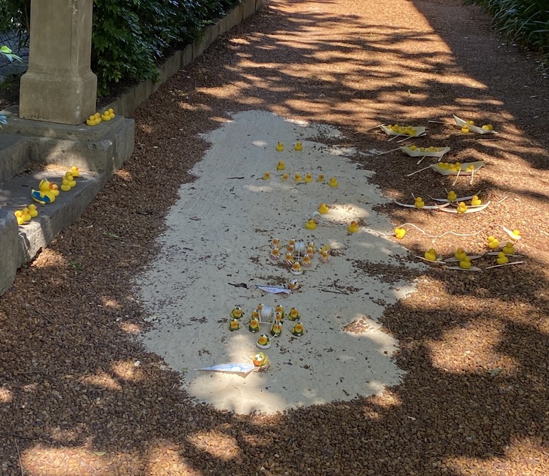 Teddy bear hunts and rainbows in windows became a somewhat common sight during the lockdown as people tried to bring cheer to people passing by. My favourite variant was in the driveway of a house in Paddington. I have no idea who lives inside but I loved walking past and seeing what dramatic scene they’d managed to create with their plastic ducks. Whether re-creating Arthurian legend or bringing the beach to Paddington, a glimpse of the new story being told through ducks never failed to brighten my day.