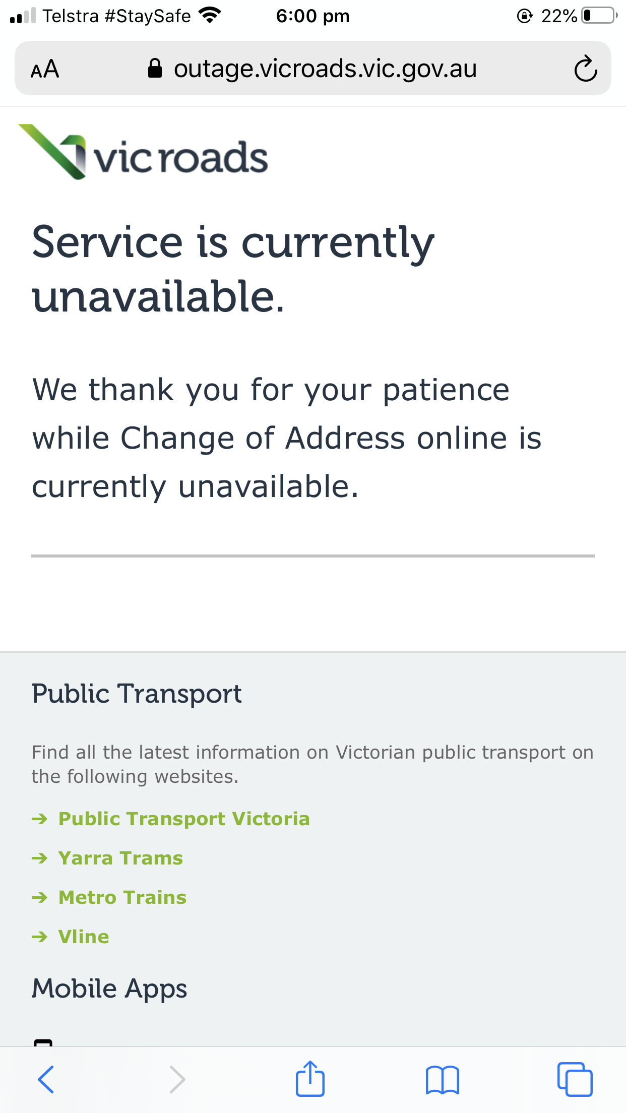 The ring of steel meant that I was separated from both my family property and my boyfriend who lives in Regional Victoria, although we could still visit one another it just didn’t feel the same. Like going through customs at an airport you are grilled on your reasons for travelling into a regional zone, and the answer of visiting a partner seemed to also evoke a multitude of other questions confirming the validity of the aforementioned statement. This however was all very necessary as there are regions of Victoria that haven’t even seen one single case of COVID since it reached Australia in January 2020. My first image was taken one day upon my return to Melbourne from seeing my boyfriend in regional Victoria and epitomises how even back in April, COVID-related precautions were widespread. Whilst my second photograph pinpoints the outage which the Vic Roads change of address function encountered a day prior to the announcement of the ‘Ring of Steel’ on July 9, 2020. The third photo is a government document and summary of those restrictions that were also outlined from this date onwards.