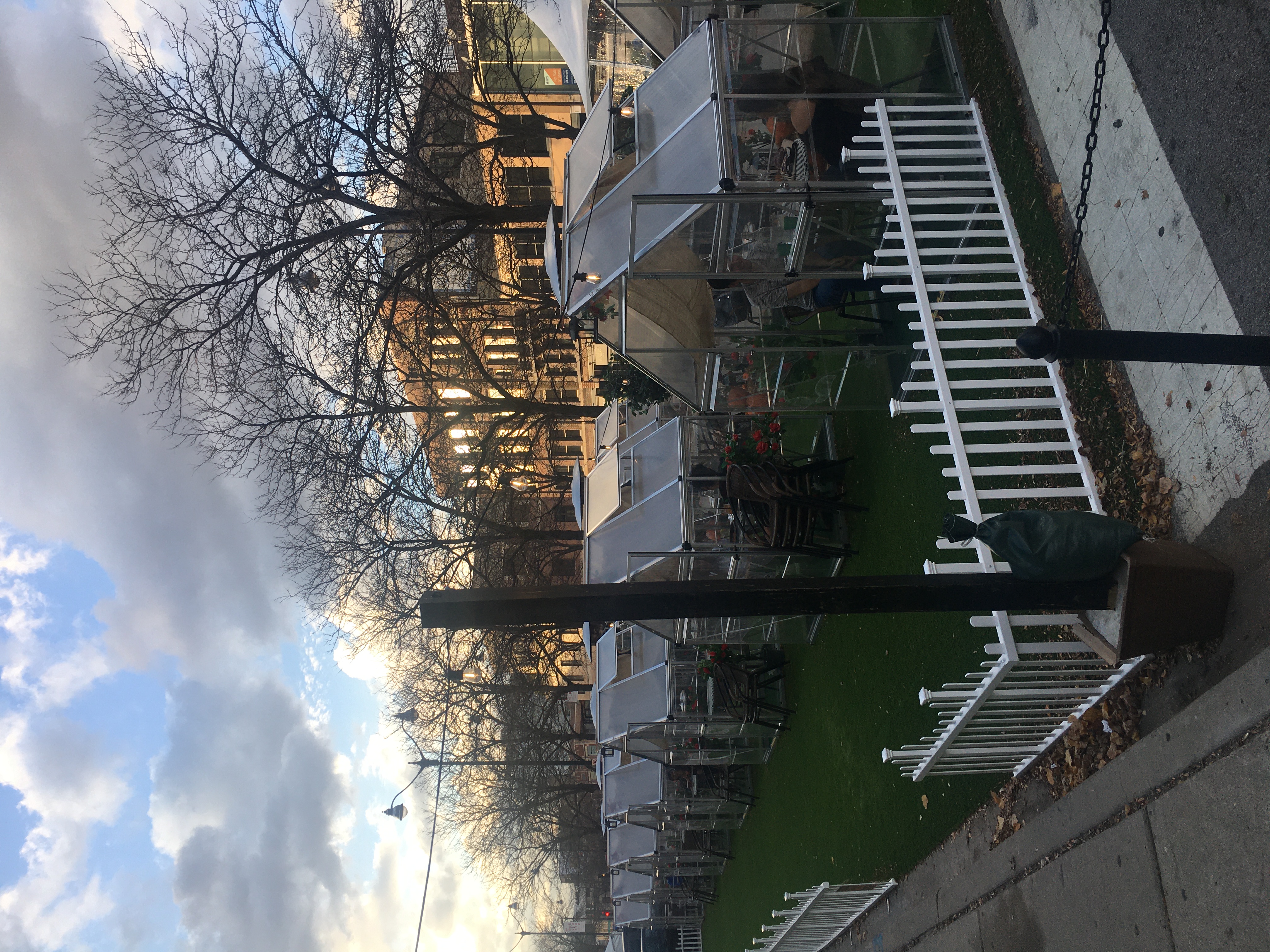 Outdoor seating at the restaurant Darling in West loop, Chicago.