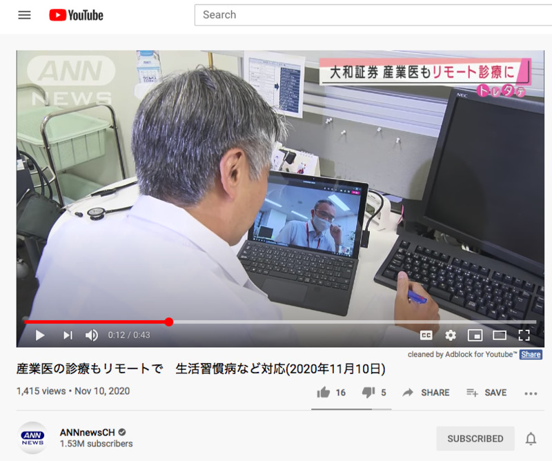 産業医の診療もリモートで 生活習慣病など対応(2020年11月10日) - Remote medical care by occupational physicians for lifestyle-related diseases (November 10, 2020)