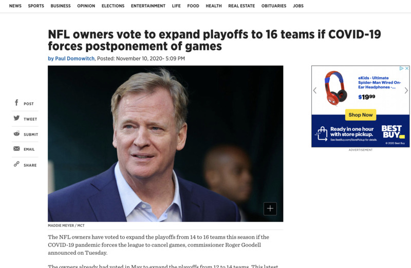 the NFL is dealing with COVID-19. This is likely the hardest sport to manage when it comes to COVID-19. considering each team has over 50-60 players on the roster + the insane amount of coaches and player personnel. Multiple teams have had to cancel games, and the situation is continuously adapting.