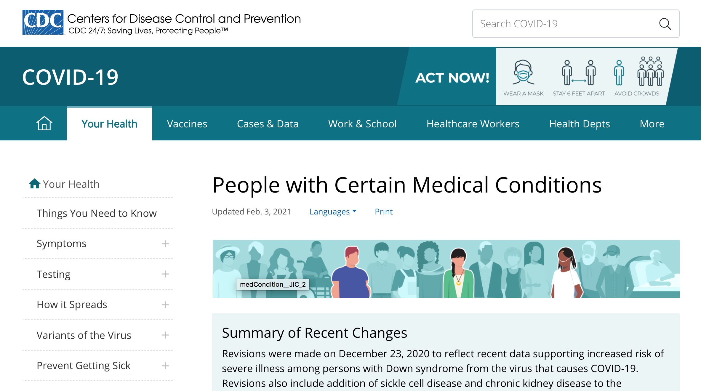 This is new information dated November of this year updating the list of groups at higher risk for Covid-19. It is important to me because I am a member of a high risk group and virus prevention is important to me.