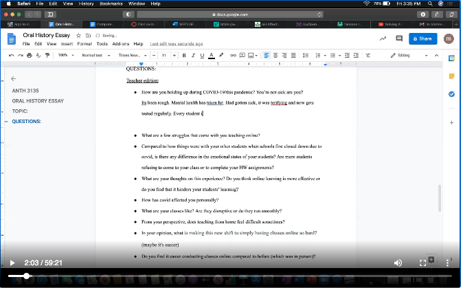 In this video, I interview a former high school teacher of mine and I ask her questions about experiences she's had while battling this pandemic. I believe she's also attending Brooklyn College Graduate (Law) school.