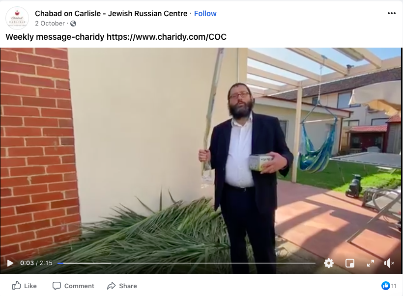 This is a weekly video message from Chabad on Carlisle to their congregation. This one is for Sukkot and encouraging people to donate to their charity appeal.