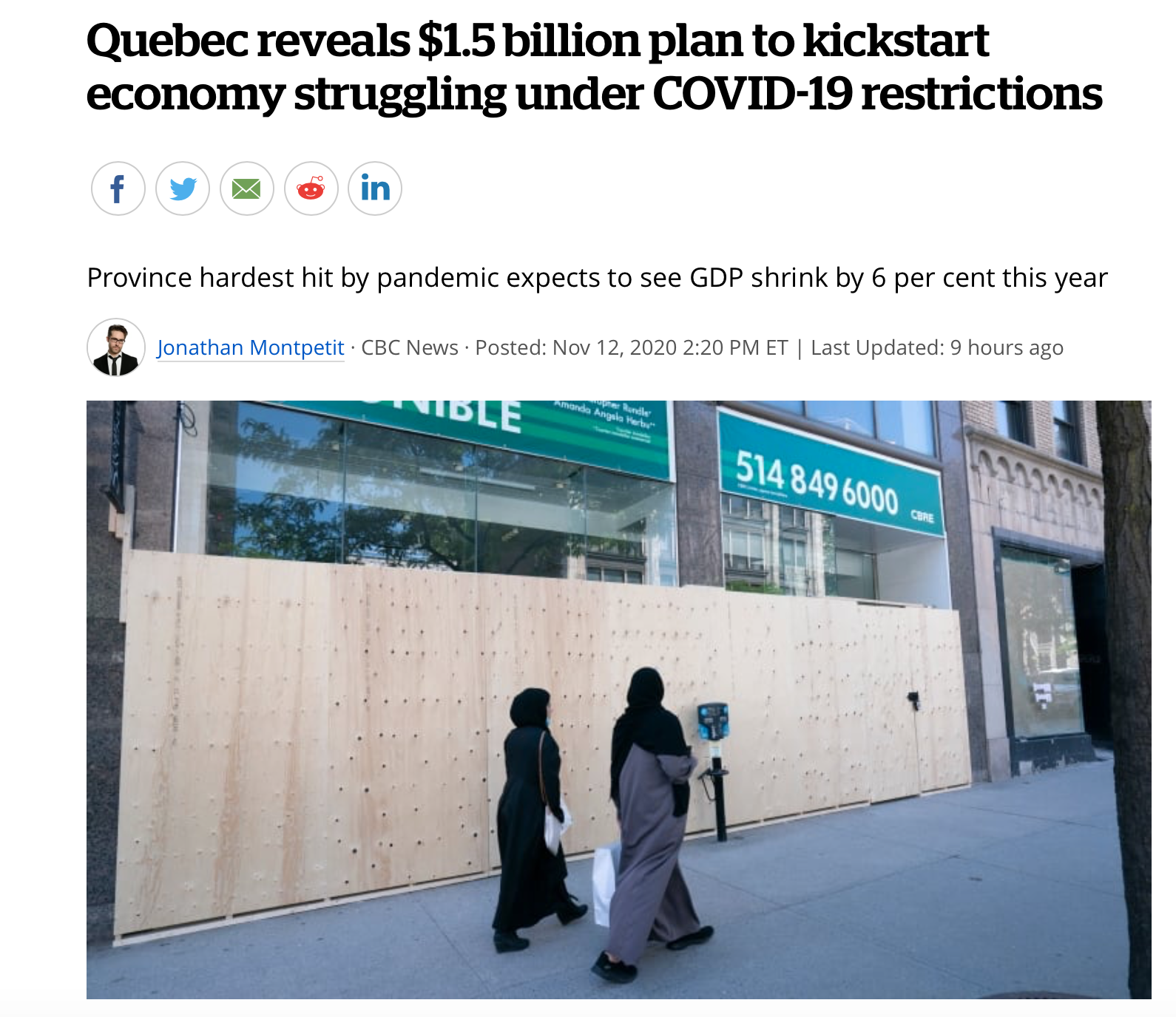 Quebec has been one of the hardest hit provinces during the pandemic. This plan hopes to revitalize the economy by investing in workers, "buy local" initiatives, and research. This will also come with a deficit for next couple of years.