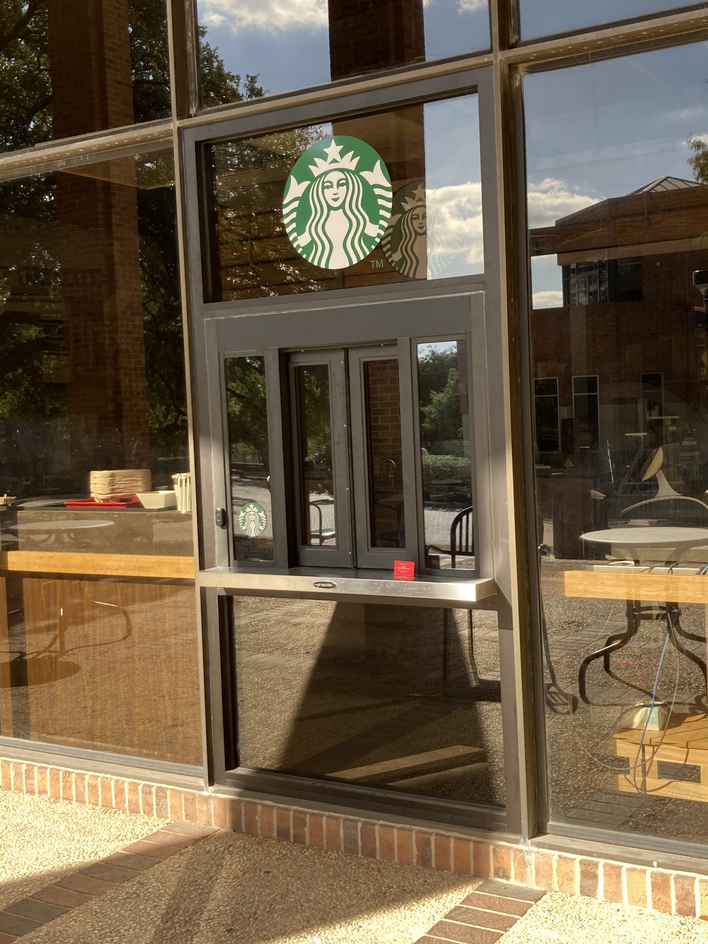One of the busiest areas on campus is the Blume Library, particularly the Cotrell Learning Commons which is where the campus Starbucks is located. Changes were made to library operations in March and that included how the public would enter and exit the building. In order to limit the number of patrons inside the building, a walk-up window was added to accommodate those wanting to enter just to get Starbucks.