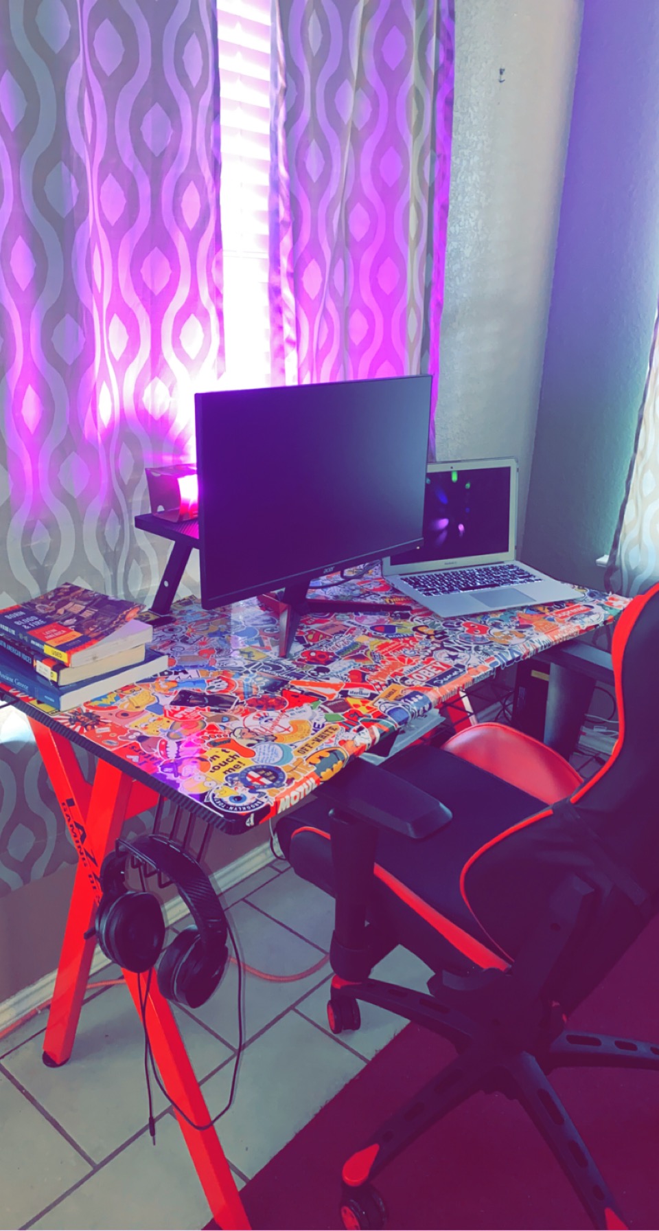 This is my desk that I would attend my online classes from. This is definitely different from the normal desks or tables I’m familiar with or anyone student is. This is different also because you don’t have to choose where to sit in the class. Do you sit up front, in the middle or the back of the class? With online classes every student is front and center on their screen. When coming to class I would be almost uncomfortable having to takes notes in such a small area to don’t disturb the student on your left or right. With your own desk you have the freedom to spread out a feel comfortable with taking notes.