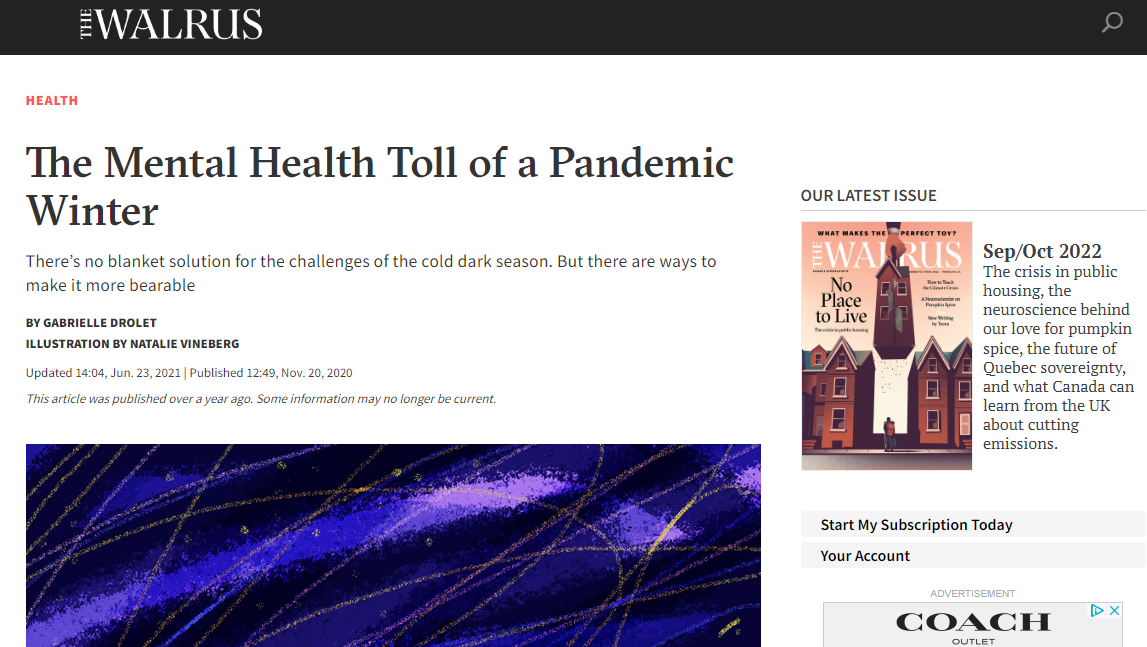 Mental Health in the Winter of a Pandemic