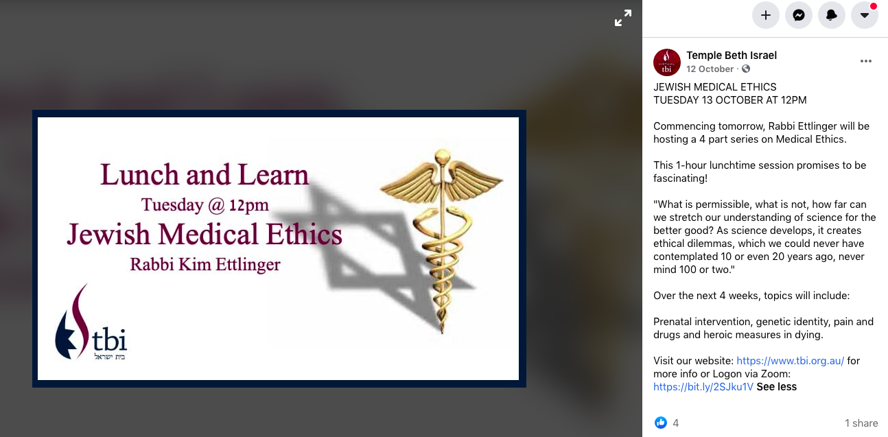 Commencing tomorrow, Rabbi Ettlinger will be hosting a 4 part series on Medical Ethics.