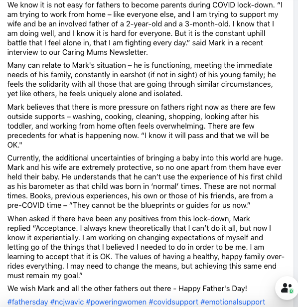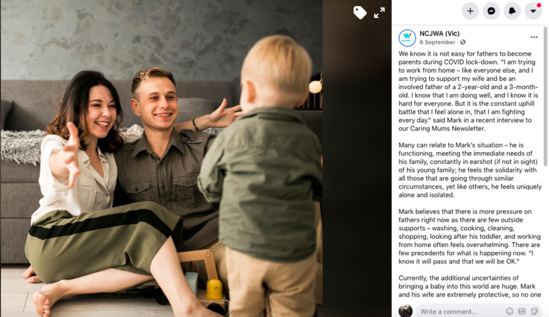 Jewish Melbourne: NCJWA (Vic) Fathers Day during Covid Facebook post