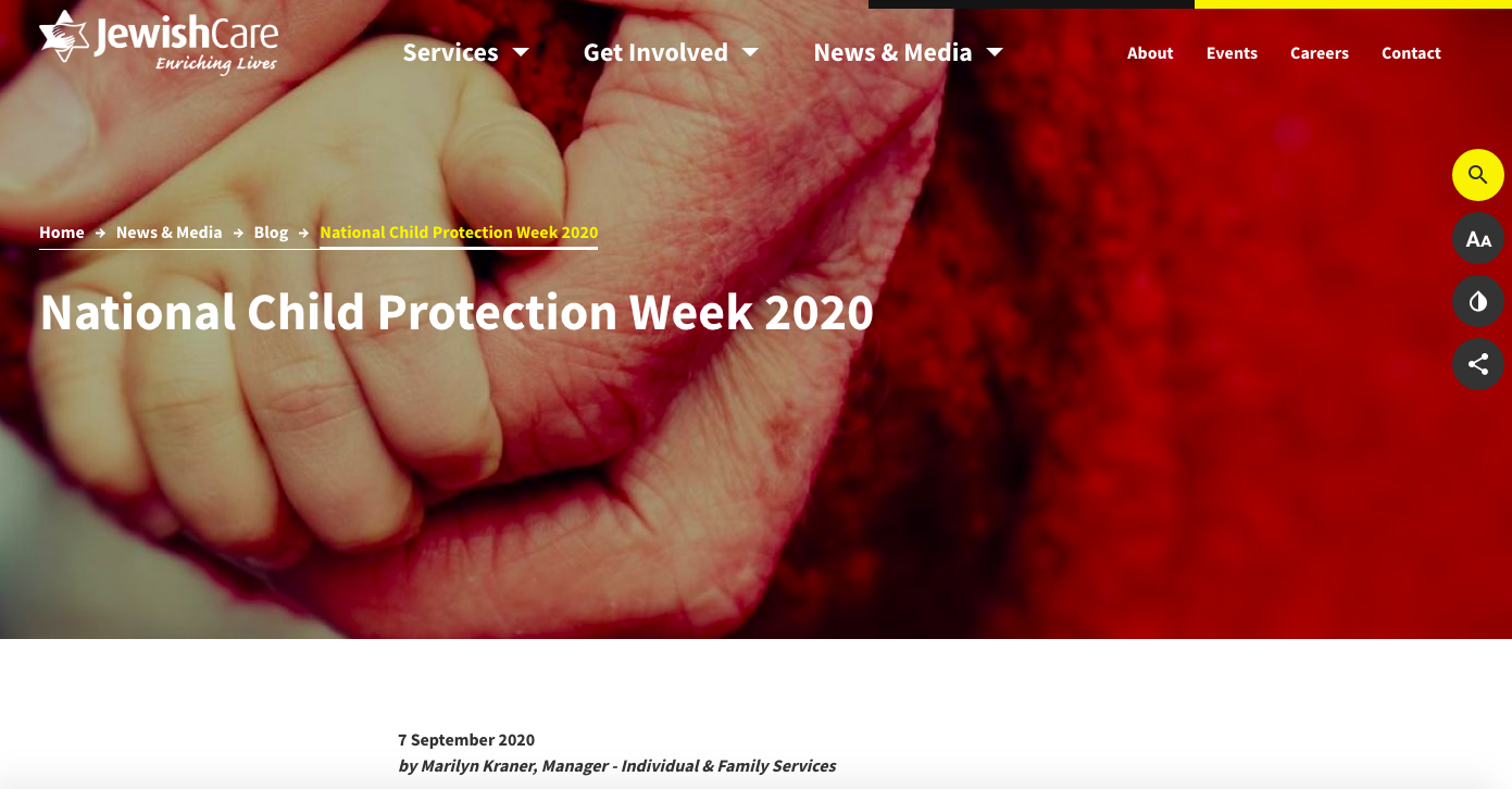 Blog post for Jewish Care by Marilyn Kraner, Manager - Individual & Family Services, discussing child protection during the pandemic