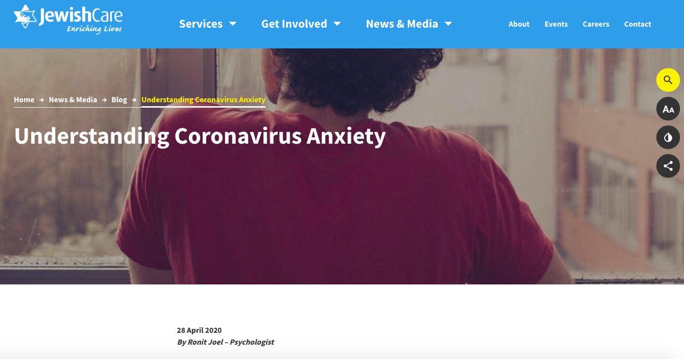 Blog post by Ronit Joel – Psychologist, for Jewish Care, about understanding and managing covid anxiety