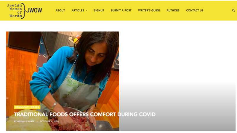 Atida Lipshatz wrote a piece for Jewish Women of Words reflecting on food during the pandemic