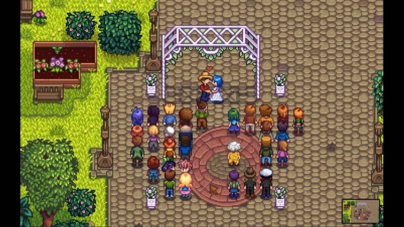 This is a screenshot of my wedding in Stardew Valley