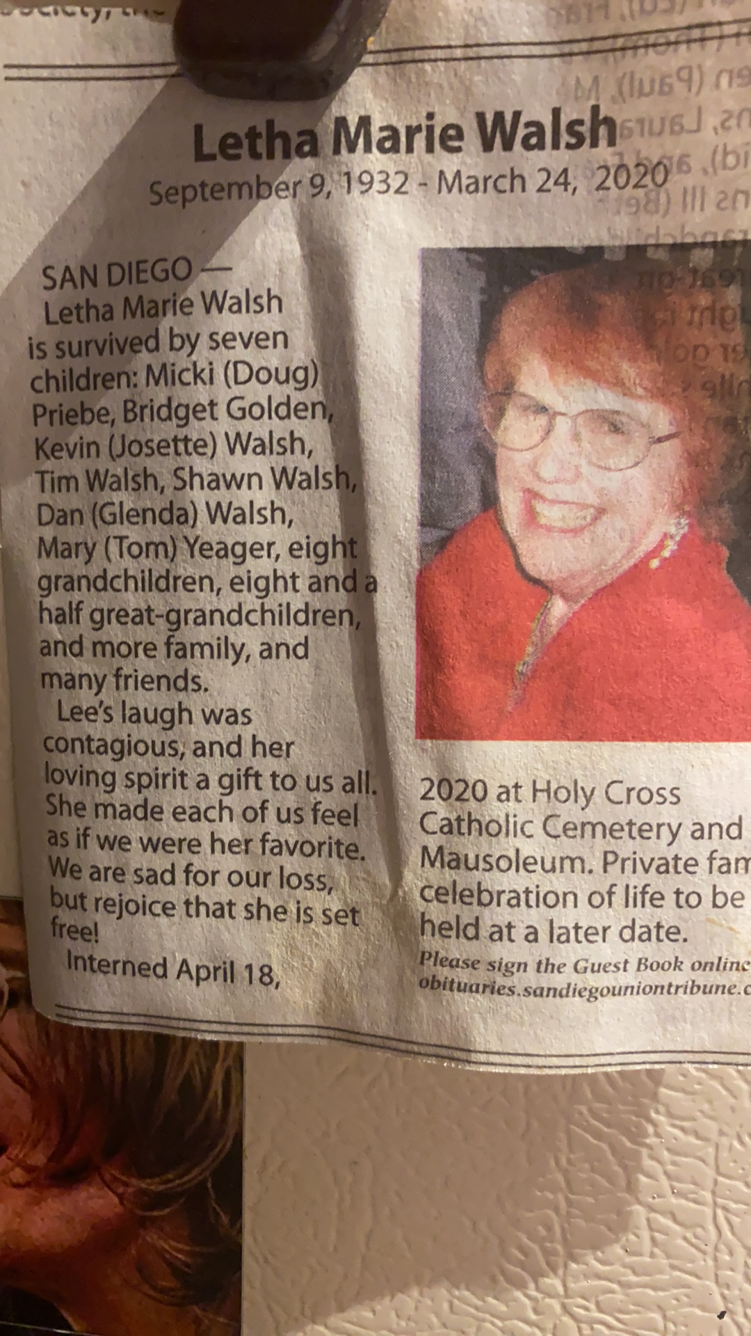 Scott hasn't been able to properly mourn the death of his Grandmother. She was in the high risk category of people that could die from Covid-19 infection with having Alzheimer's disease and her family missed the opportunity to have a proper funeral for her.