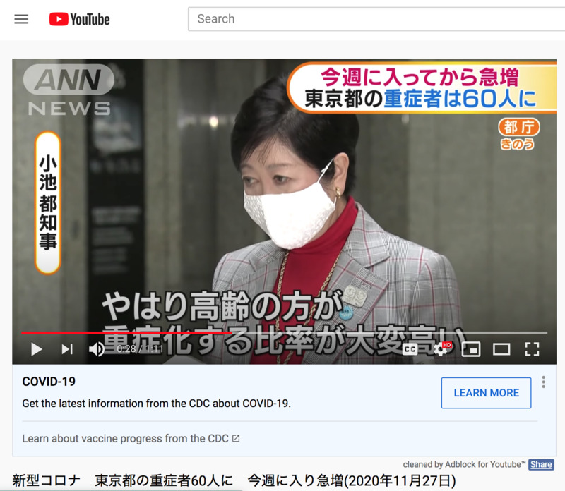 – COVID-19: A rapid increase to 60 people with severe symptoms in Tokyo this week (November 27, 2020)