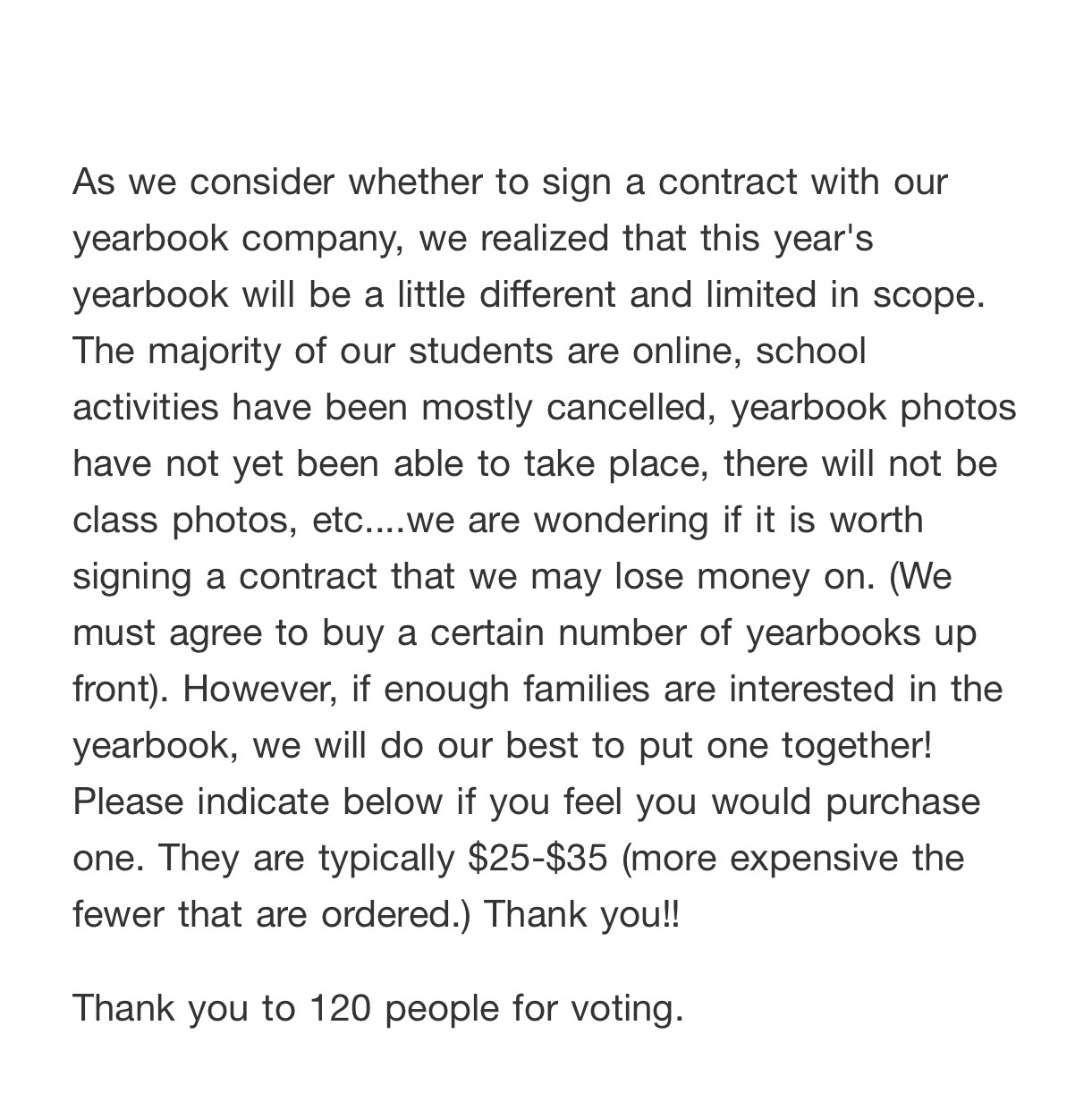 During the COVID-19 pandemic school year, things have changed. A staple in school has always been the yearbook. This year the yearbook for my niece's school is running into problems. The school is required to pay a certain amount for a contract with the company apparently. Considering most kids are attending via virtual school their not much as far as in school pictures. I wonder how badly yearbook companies as a whole are getting hit this year.