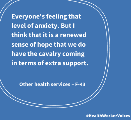 Quote from Female aged 43, Other Health Services. Image created by the Health Worker Voices project: https://mspgh.unimelb.edu.au/healthworkervoices