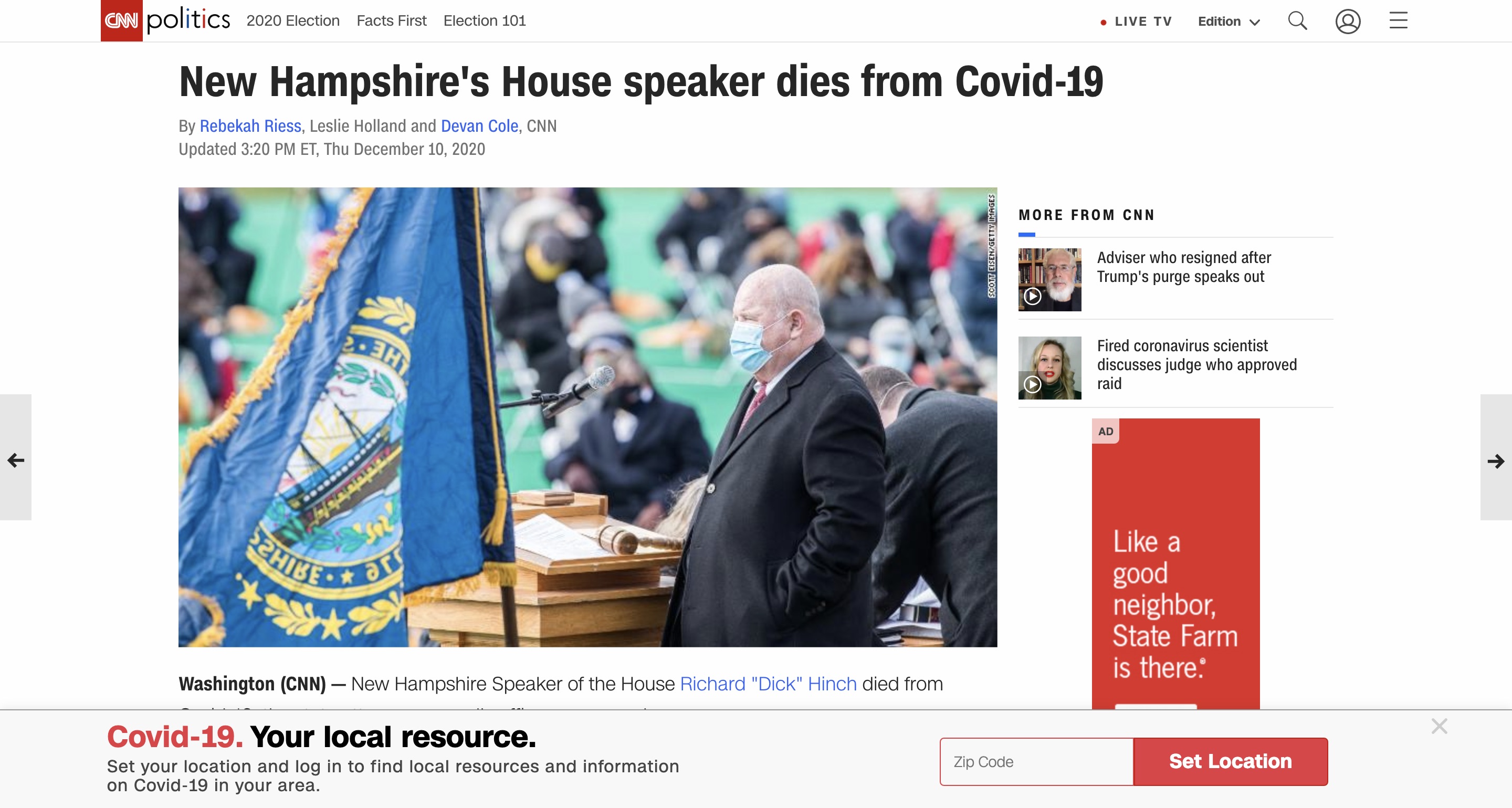 New Hampshire House Speaker dies. Politicians are not immune to COVID-19.
