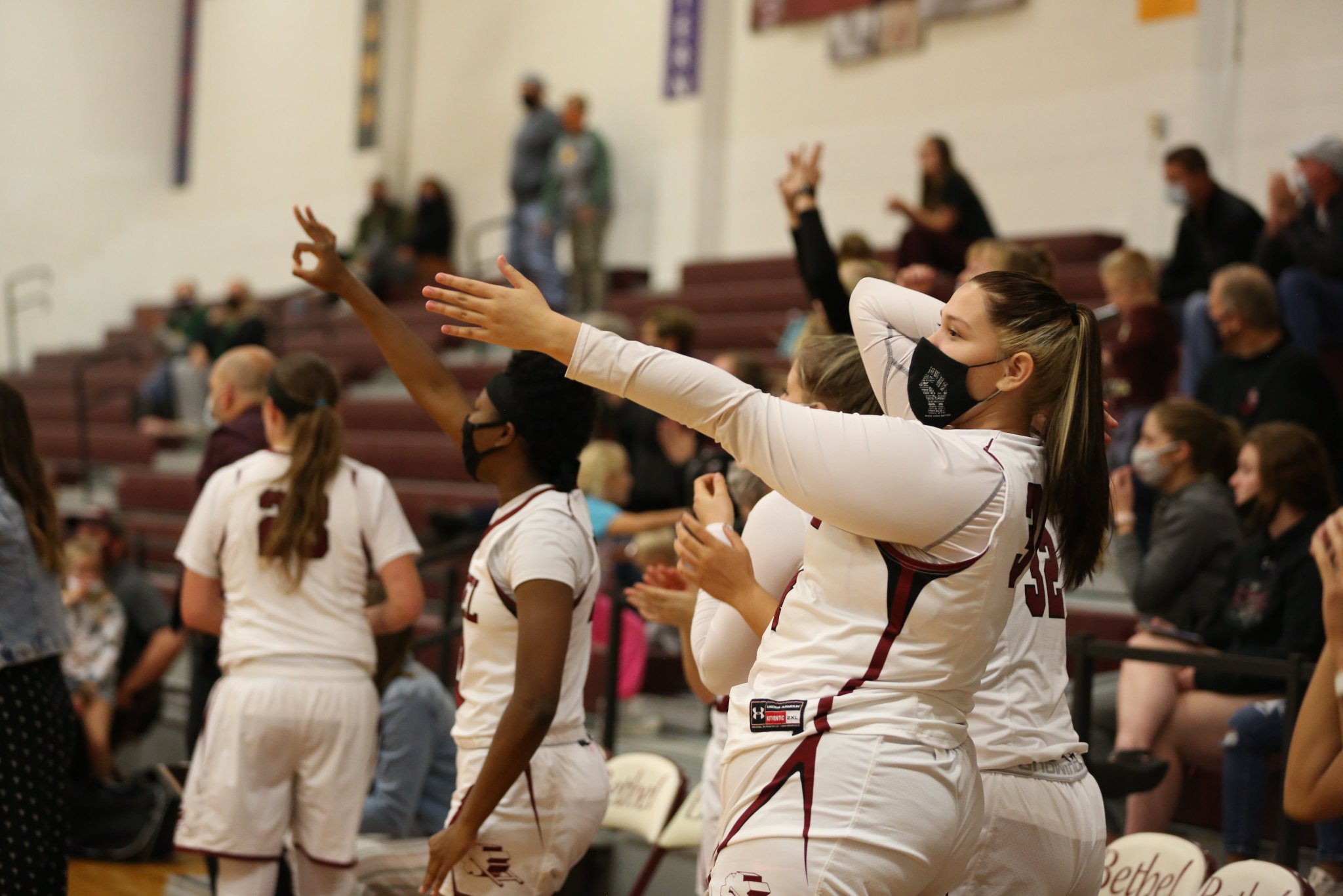 This is a photo of my teammates and me on the bench cheering on our teammates, but as you can see, we're all wearing mask. We have never had to do anything like that ever before and its all just a new and weird precess that is taking some getting used to. Wearing these mask are kind of a hassle for us athletes especially during a game because its very hard to get air through them when youre tired, but we all know that its for the greater good of the world.