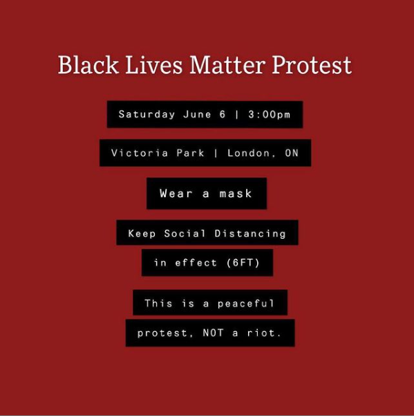 This poster advertises a peaceful protest, and some of the space is used to explain COVID protocols while protesting.