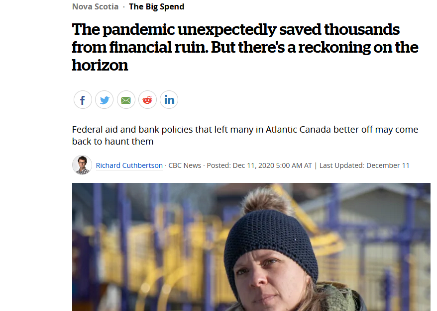This article talks about the financial worries Canadians are facing as the pandemic and government supports lift.