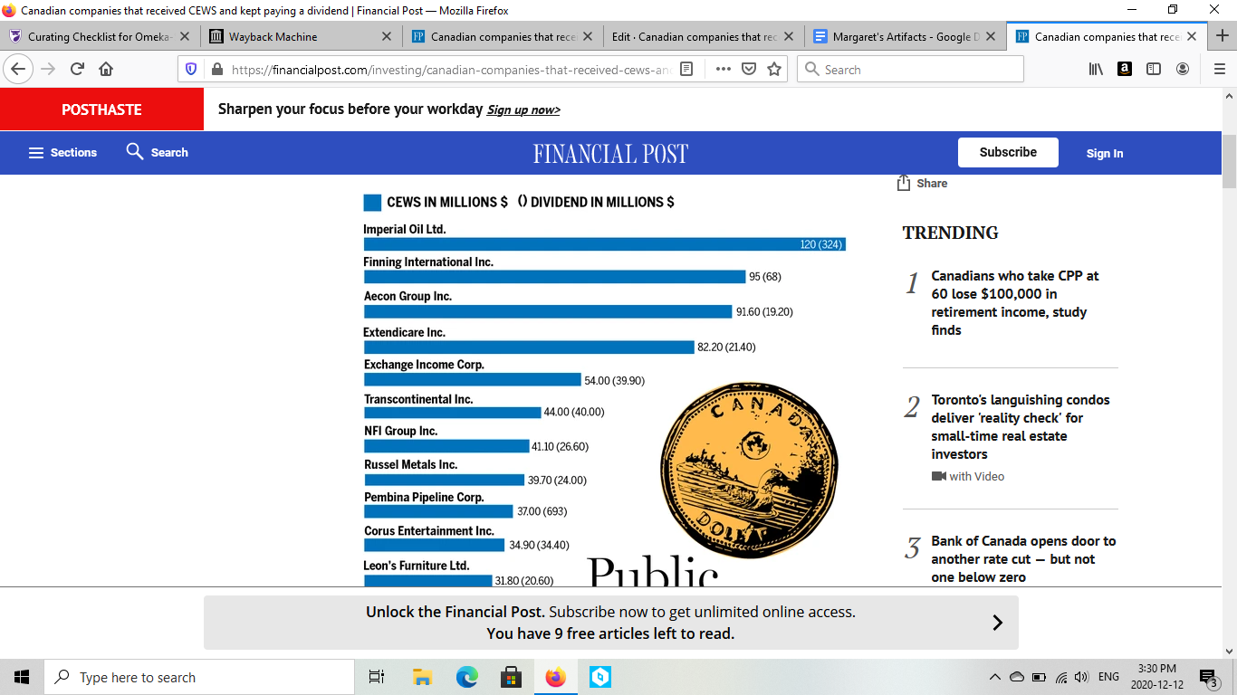 Canadian companies that received CEWS and kept paying a dividend