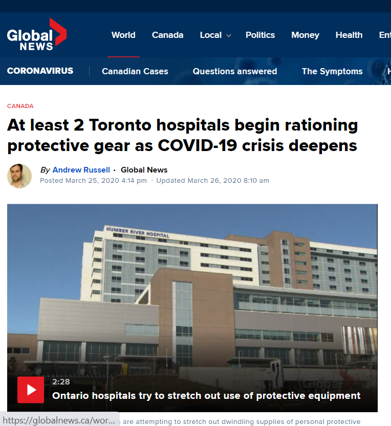 At least 2 Toronto hospitals begin rationing protective gear as COVID-19 crisis deepens