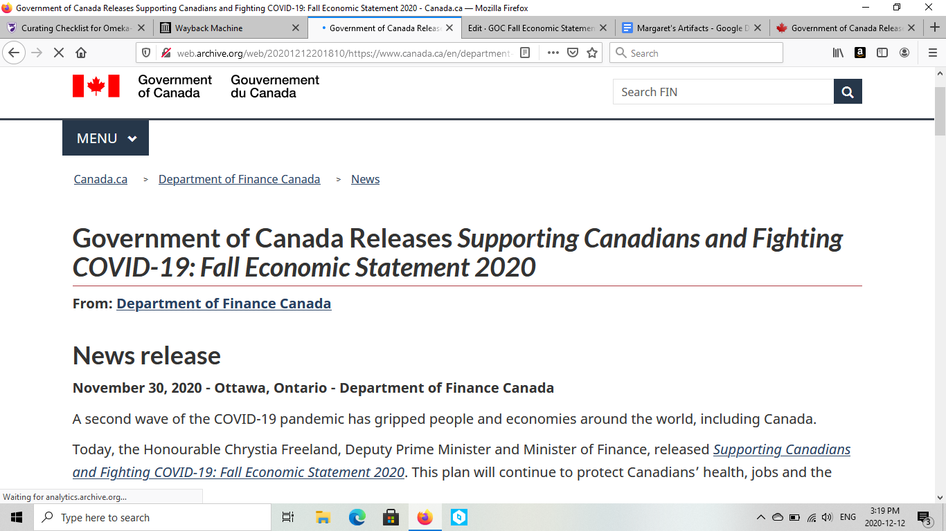 This item was submitted on December 12, 2020 by Margaret Schultz using the form “Share Your Story” on the site “A Journal of the Plague Year”: https://www.covid-19archive.org/s/archive