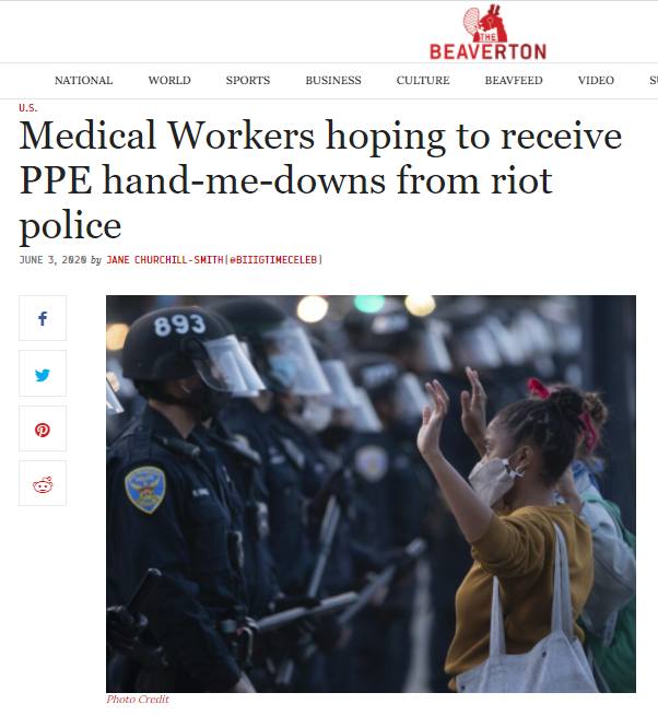 "Medical Workers hoping to recieve PPE hand-me-downs from riot police"