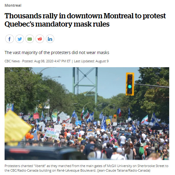 This article covers Quebec's recent protests this past summer with anti-maskers gathering and chanting "liberté." While some demanded freedom, others openly questioned the government's response to the pandemic.