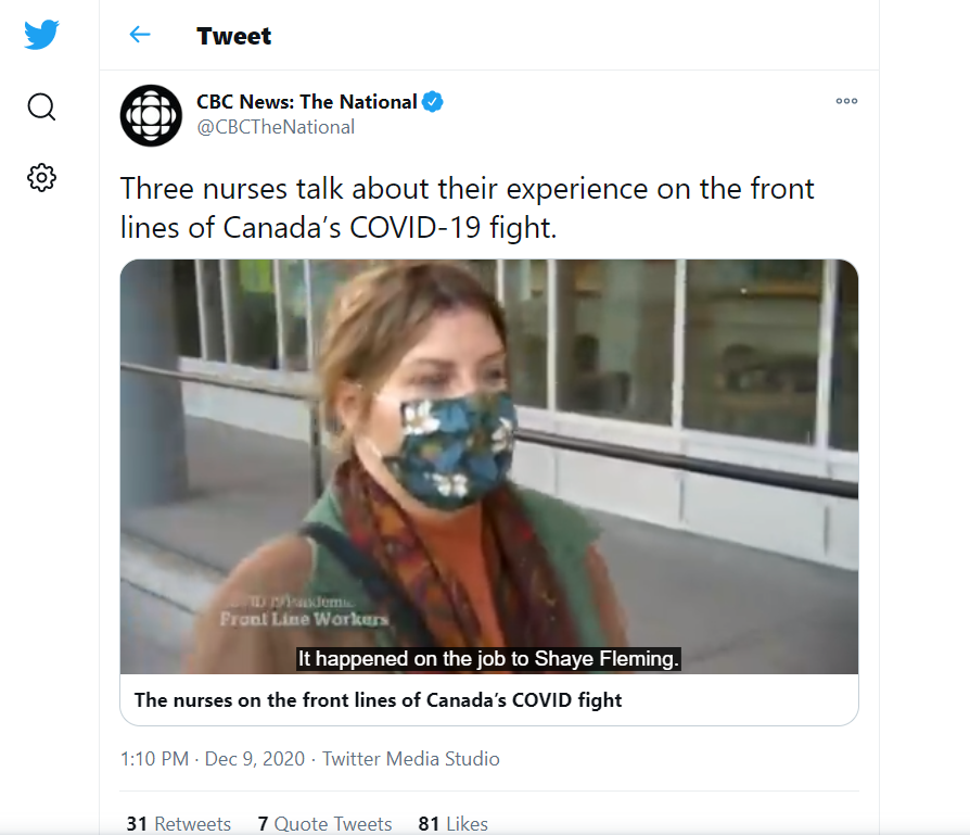 A six minute video about the hardships of being a nurse during the COVID pandemic.