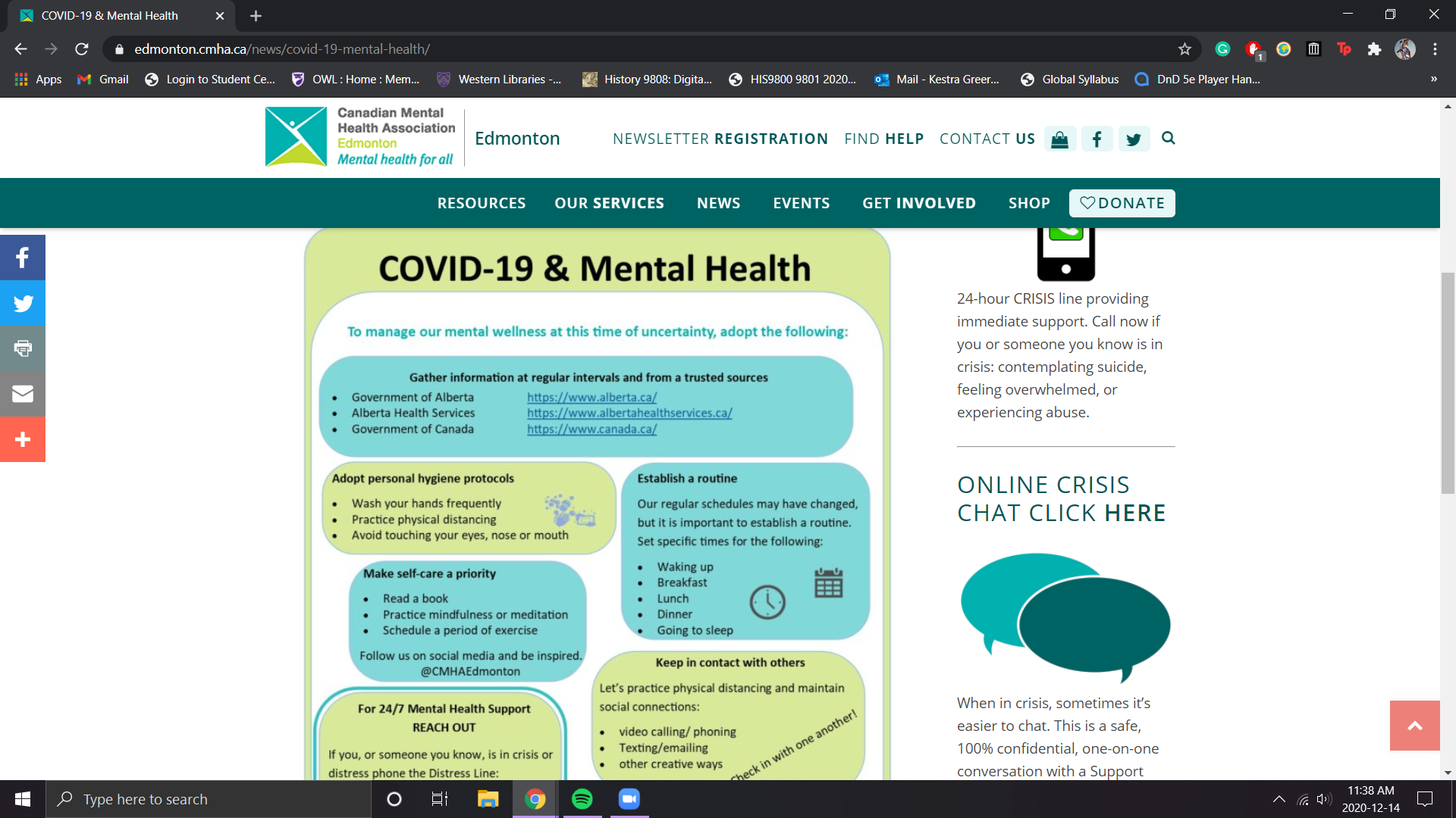 Tips from the Edmonton Canadian Mental Health Association on how to manage our mental wellness at this time of uncertainty.
