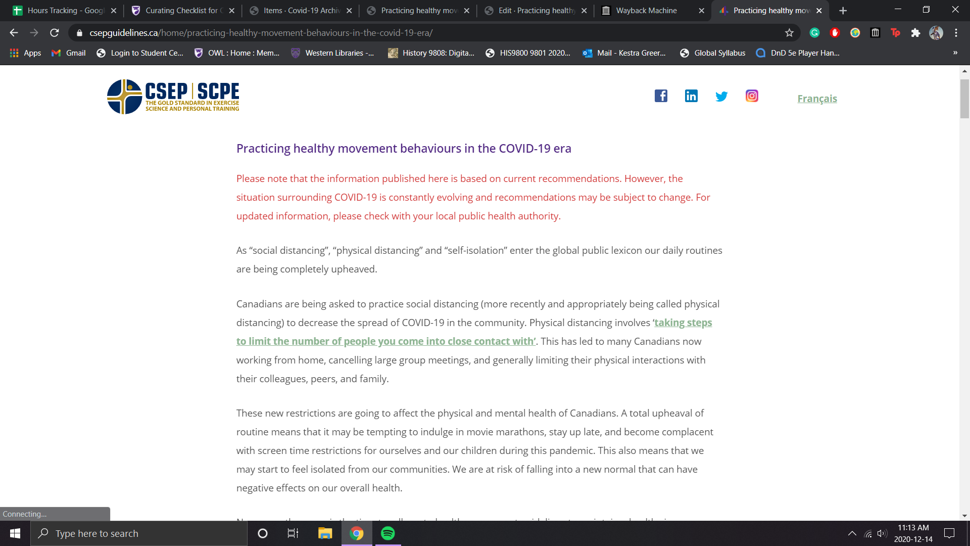 In response to the restrictions put in place by the government, the CSEP believes its important for Canadians to adhere to healthy guidelines in order to maintain a healthy immune system and build a strong defence.