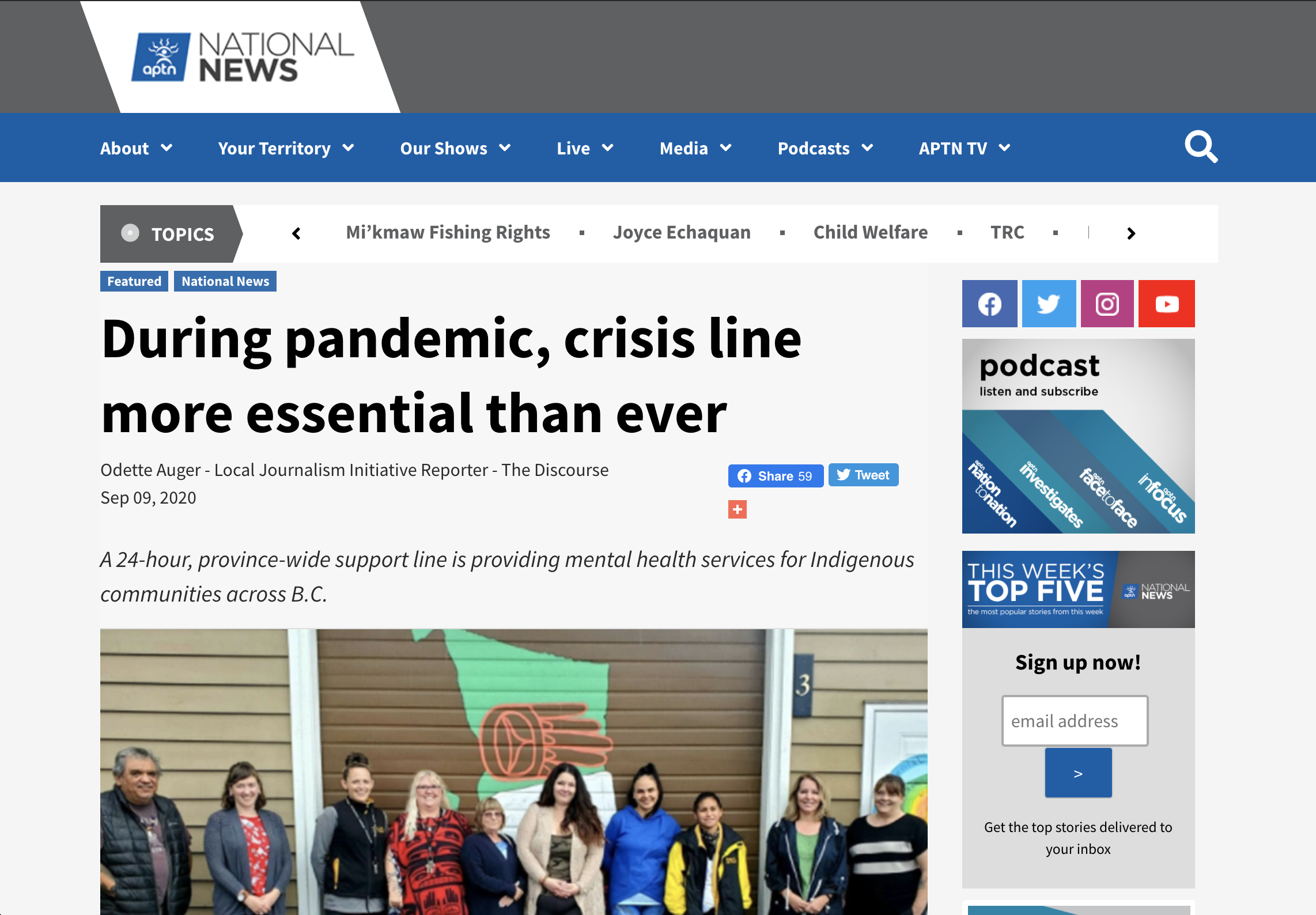 An article from the Aboriginal Peoples Television Network (APTN) about the importance of crisis phone lines to mental health in Indigenous communities