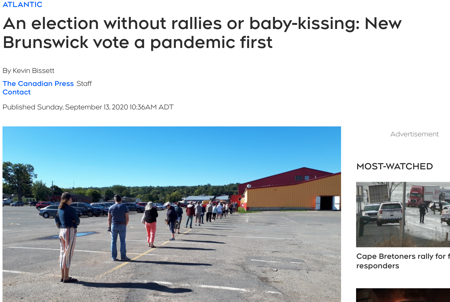 This news article describes the impact of COVID-19 on the New Brunswick provincial election.