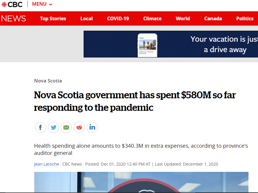 This article details how much money the government of Nova Scotia allocated to different sectors of the Nova Scotian economy during the pandemic.