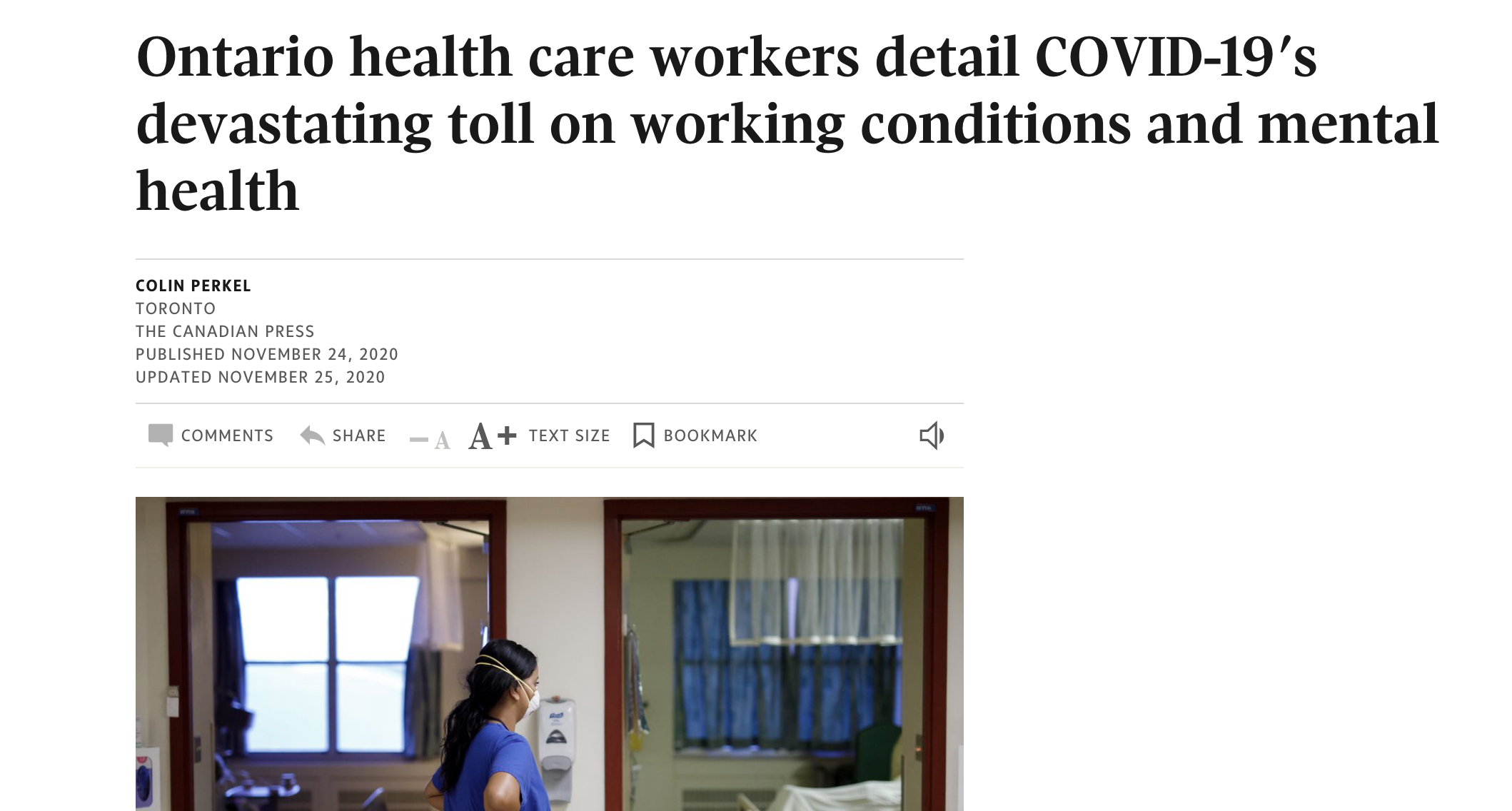 An article from the Globe and Mail about the conditions hospitals workers experience.