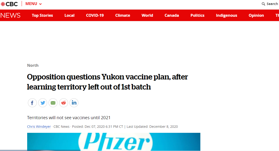 Opposition questions Yukon vaccine plan, after learning territory left out of 1st batch