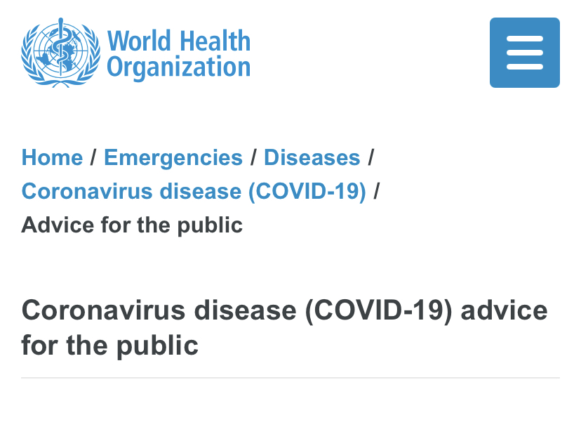 The World Health Organization (WHO) on their website has some advice for the public on how to stay safe in general during the pandemic. Some precautions include keeping rooms well ventilated, avoiding crowds, cleaning your hands, and coughing into your shoulder. They also go on to explain how you should avoid the threes C’s; spaces that are closed, crowded or involve close contact. They do not suggest having gatherings indoors, if a gathering is needed the WHO recommends to meet people outside and wear your masks. In the midst of all of this they do not want you to forget the basics of good hygiene. They promote regularly washing your hands with alcohol-based hand rub or wash, avoid touching your eyes, nose and mouth and clean and disinfect surfaces frequently mostly those which are regularly touched. They finish off by knowing what to do if you feel unwell. They lay out the symptoms of covid-19 and tell people if they experience any of these to self isolate themselves.